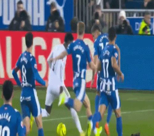 第68分鐘,布蘭科送出長傳,比森特單刀勁射破門,VAR示意進(jìn)球有效,阿拉維斯扳平比分,1-1!